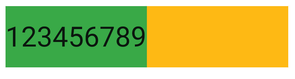 Row( children: [ Expanded( flex: 1, child: Container( height: 100, color: Colors.green, child: Text('123456789'), ), ), Expanded( flex: 1, child: Container( height: 100, color: Colors.amber, ), ) ], )